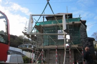 A former boat house Converted into a residential house a few years ago and has now had extensive work carried out with an internal steel frame fitted, all joinery supplied by Charlestown Joinery.
